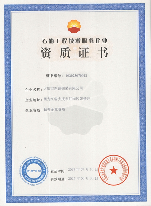 大慶東油鉆井企業(yè)資質(zhì)證書(shū)